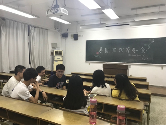 首先,主持会议的小队队长沈雅婷先大致介绍了一下此次暑期社会实践的活动流程并进行了大体上的人员分工。大家就各自负责的筹备工作进行了热烈的讨论。小组成员张陆星和乔聪对建立暑期社会实践活动的微信公众号进行了规划和安排。小队队长沈雅婷、朱觅和朱子晏同学在一起集中商量了此次暑期社会实践活动要准备的物资等问题。小队的李傲然、秦宇涵、陈文辉、陶润秋和陈银同学共同讨论了活动的具体宣传工作和社会实践活动的意义,筹备会上的讨论气氛比较热烈。
