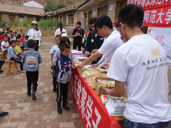 下午,在卡子沟举办开班仪式的同时,支教队员们为卡子沟村的学生发放健康卫生礼包。同学们积极有序地领取。