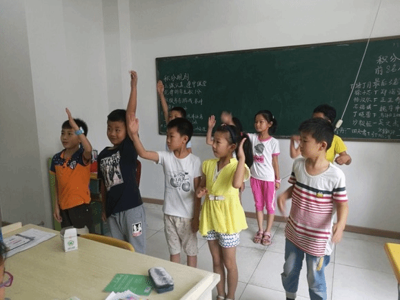 跟前几天一样,团队成员们依旧很准时的到达活动场地。上午团队成员带领孩子们做了一个〃逢3过〃的数字游戏,使孩子们既开动了脑筋,巩固了数学知识,更加熟悉了乘法口诀表,又迅速拉进了与老师们的距离,更加配合老师上课。在逢三过的游戏结束之后,团队成员又带领孩子们玩起了正话反做的游戏,孩子们表现的异常积极,都愿意上台玩,纷纷举手组队上讲台参与游戏。在这个游戏过程中,孩子们既锻炼了敏捷度,又锻炼了判断力,能够更好的服从老师的口令。传声筒游戏又使氛围更加热烈,孩子们踊跃参与,通过分组地方式进行了对抗,在游戏中增加了团队协作能力与彼此之间的默契。