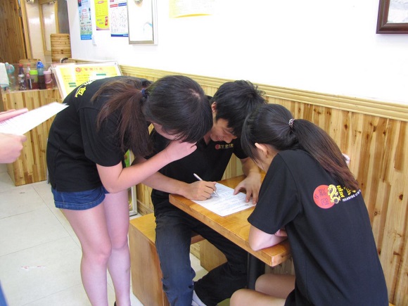 时值三伏天,火伞高张,但闷热的天气依然无法阻挡游客对曾厝垵的热情,这同时也给针对商家的调研工作增加了难度。经过两小时的努力,队员们一共完成了26份调查问卷。
