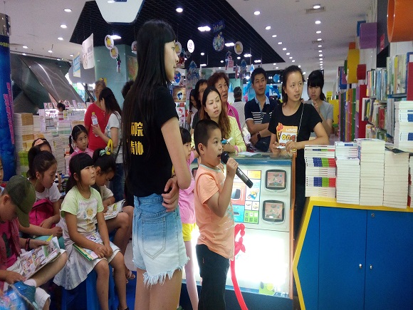 “红烛”青协的志愿者们来到凤凰国际书城,在四楼小舞台开展了此次“为你读诗——让生活诗意盎然”暑期实践活动。