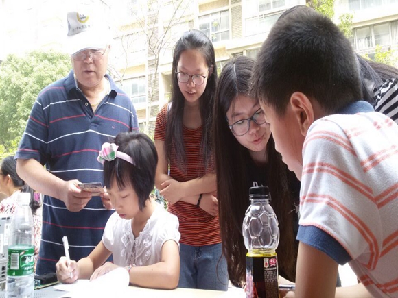 本次招募活动的对象以9至12岁的小学生为主,借家长带着小朋友来参加社区活动之际,宣传本次暑期社会实践活动。首先,小分队成员们挂好横幅,张贴海报,布置咨询台。其次,经过一番商量,小分队成员们分配好任务,集体出动,询问有意愿的小朋友,介绍本社会实践的特色活动,在征得家长同意的情况下,进行报名。经过全体成员的不懈努力,招募到了近十名学生。