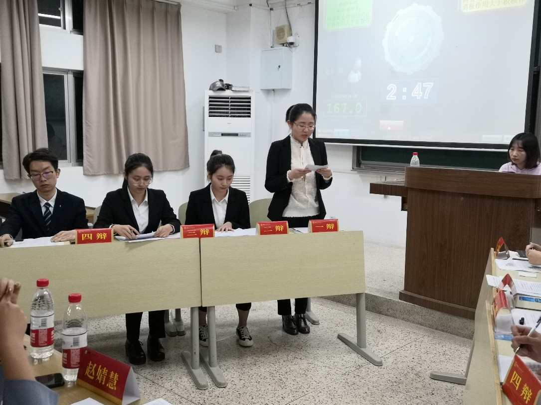 四辩更是以“监督不等于干涉”“4.14聊城于欢案”将比赛推向高潮。在回答观众以及评委问题期间,双方选手信心十足,回答有理有据,将辩论赛带入另一个高潮。总结陈词双方辩手立足整场辩论赛,围绕自身立场展开辩论,为赢得比赛进行最后的冲击。