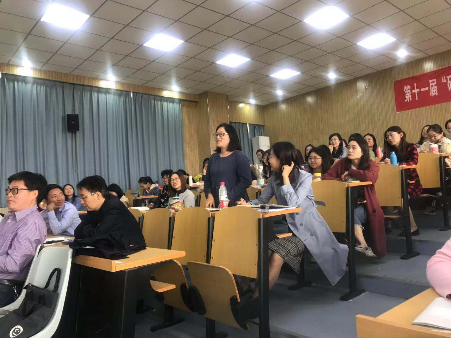 程教授通过幽默的语言,着眼于英语课堂教学中的常见问题,以小见大,提出了一系列促进学生核心素养发展的途径。“核心素养背景下,英语教学的目的不局限于使学生掌握英语知识和技能。英语教学应有助于促进学生核心素养的发展;英语学科核心素养不仅仅包括语言能力,还包括文化意识、思维品质、学习能力;英语教学既要继承传统,更要不断创新。”程教授在对英语核心素养进行阐释的基础上,提出了几点具体建议,在场的每一位老师和同学受益匪浅,大家踊跃地互动交流。