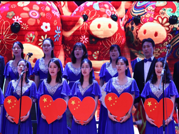教职工们以一曲动听的《我的祖国》献礼新中国70华诞。他们热情歌唱,他们激情诉说,一颗颗炽热的“爱国之心”与真诚的歌声相互交融,彰显教师院教职工的风采。最后,全场齐唱《歌唱祖国》,在激昂的旋律中,在高扬的情绪中,歌咏比赛圆满落幕。