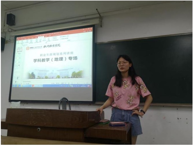 5月24日,由19级徐琦学长,陆方、蒋晓雪和肖钰敏学姐主讲的“职业生涯规划讲座”学科(历史)专场以及由19级张旭彦学姐主讲的“职业生涯规划讲座”学科教学(地理)专场分别于学明楼219教室和209教室顺利举办。其中,20级学科教学(历史)班同学参加了历史专场讲座,20级学科教学(地理)班同学参加了地理专场讲座。