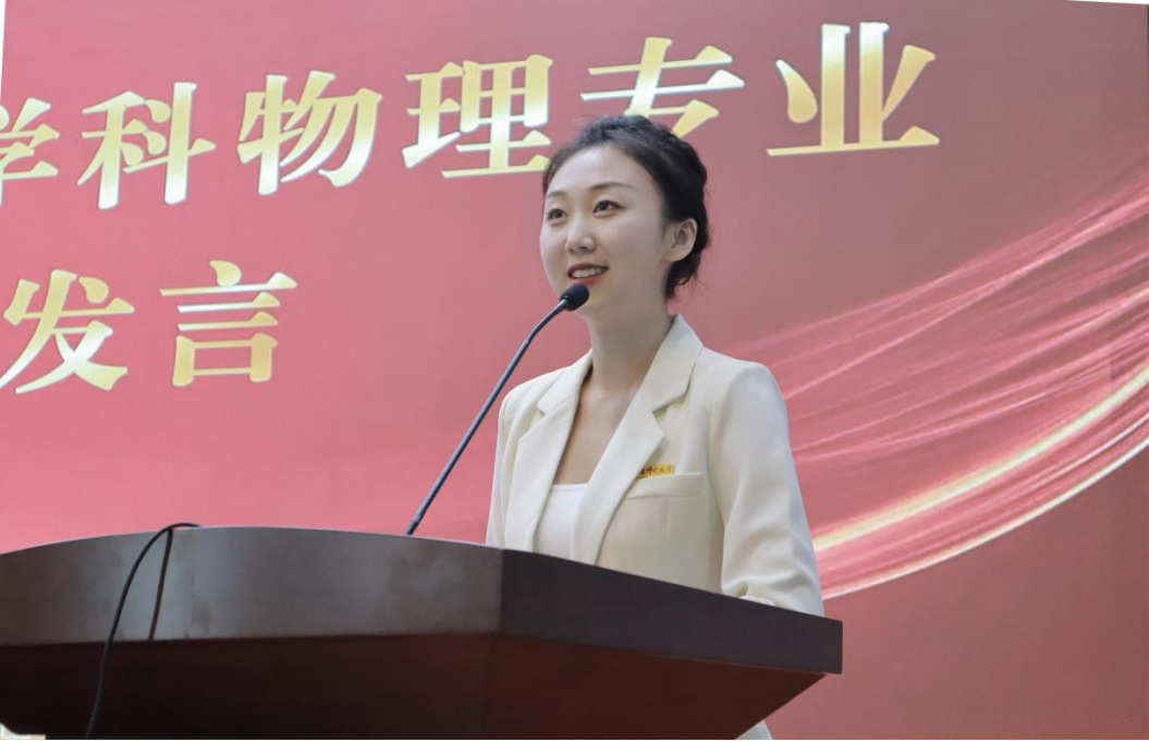 2021级学科教学(物理)专业的姜雨婧同学作为新生代表发言。结合自己的亲身实践,她代表同学们决心珍惜光阴,不负韶华,志存高远,努力拼搏,做有信仰、有信念、有信心和有志气、有骨气、有底气的时代新人。