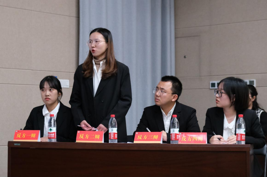 在攻辩环节中,双方二三辩针锋相对、引经据典、字字珠玑。我方二辩沉稳应对对方提出的质疑和反驳,三辩提问过程中抓住对方无法论证屈原政见是否奏效步步紧逼、立场坚定。