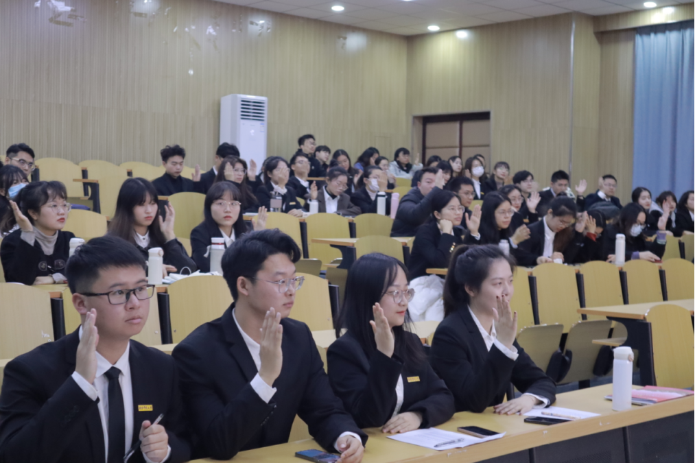 会议最后由金静依同学宣读本次大会倡议书,向全院学子发出倡议:一、在求真中学会质疑,二、在求新中谨守底线,三、在求业中恪守师德。