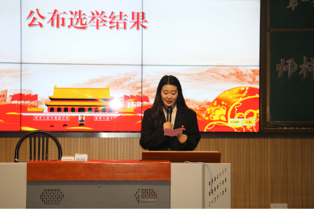 第一届研究生会委员会委员及主席团成员。代表们在充分了解11位委员候选人和5位主席团候选人的基础上投出了自己庄严的一票。计票工作结束后王天睿老师公布最终结果:选举马骏伊、王超、白丽娜、吴馨怡、张浩东、张敏、国辉、金静依、赵能君(按照姓氏笔划排序)为第一届研究生会委员会委员,选举王超、吴馨怡、张浩东三人为第一届研究生会主席团成员。