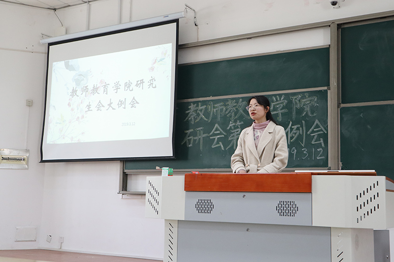 研究生会在仙林校区学正楼201教室顺利召开本学期第一次大例会。本次例会由教师院团委书记、2018级研究生辅导员王鑫老师主持,辅导员高小月老师、研会全体成员参与了本次例会。
