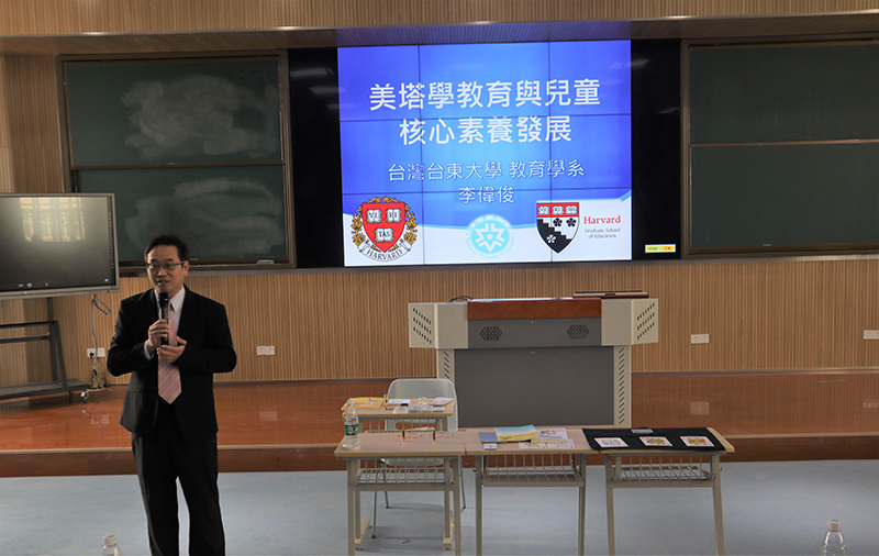 本次开幕式的第二部分是李伟俊先生以“美塔学教育与儿童核心素养发展”为主题的讲座。李教授首先风趣地介绍了台东大学的基本情况以及自己在学术与实践上的成就,接着阐述了他倡导的美塔学教育的内涵与源起,之后与现场观众进行了互动,其中包括以平衡游戏和磁性扭体装置了解电磁学,以扑克牌游戏体会数感,以神奇计算器游戏体会数学之美,各种互动不仅博得阵阵掌声,也让大家深切体会到李教授所强调的美塔学理论中的“同时与对立”之内涵。最后李教授针对核心素养提出自己的见解,认为态度、能力与知识构成“核心素养ASK”,此外还有两个重要的素养,分别是思辨与感恩。