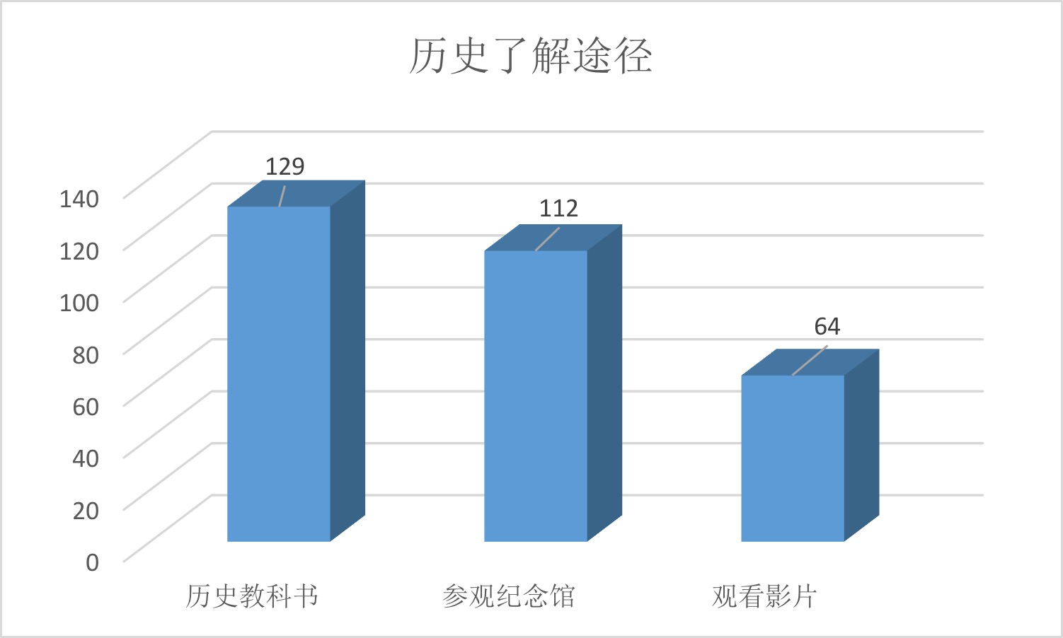 调查结果显示群众对于南京大屠杀历史的了解,更多局限于发生时间、地点等基本历史,对一些史实则不够了解。其中,南京本地人对南京大屠杀的了解情况比外地人略高一些,但差异不明显,南京人的均分为5.13,而游客的均分仅仅落后0.02;另外,报告还指出中青年对相关历史的了解程度与老年人的了解程度也大致相同;看来,普及相关史实教育迫在眉睫。