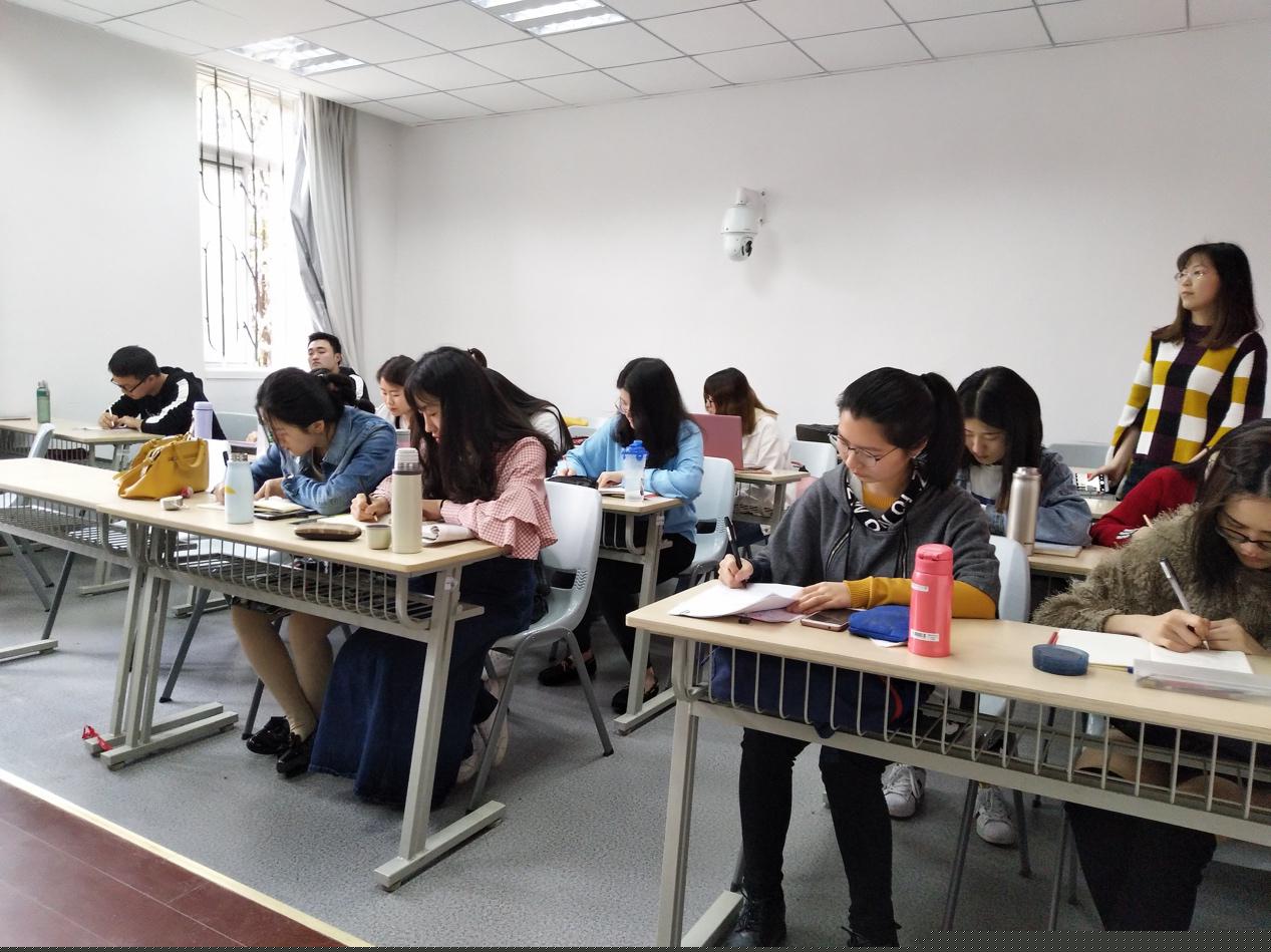 谢教授陈述了大致观点后,同学们展开了讨论,并且一一陈述自己将观点与实际教学相结合的相关事例。例如,肖薇薇小组提出在命题时可以紧扣时事热点和学生核心素养的培养,培养学生的家国情怀,增强学生的爱国精神,比如说命题时可以创设有关于两会的热议话题——树立中国品牌的相关情境在这个情境的创设中同时可以激发学生们的创新意识,促进民族企业的创新和实践。斯涵妮同学则是提出命题时可以与学生的生活相结合,比如说信息时代学生们经常会接触到的网络文学的利弊问题来进行探讨,从生活中一个细小的方面可以作为情境创设的入手点。在讨论中,谢教授根据大家的发言发表自己的见解,也对大家进行了相关指导,同学们都受益匪浅。