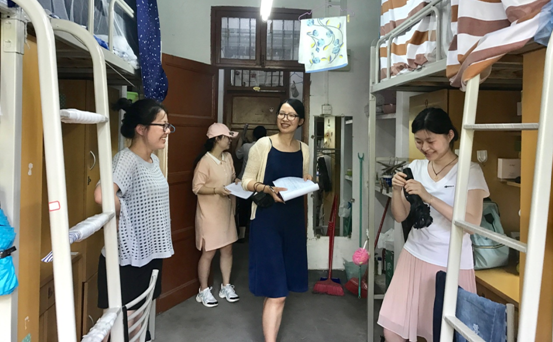 研究生辅导员王鑫老师、院研究生会主席团成员及生活部、宣传部部分成员进入宿舍楼,依次检查了随园校区七舍、五舍、四舍、三舍、一舍等宿舍。检查人员对主要对各宿舍卫生与安全方面进行评分,王鑫老师在检查过程中与同学们进行亲切交谈,询问学生近期学习、生活状况,同学们一一作出回答,现场气氛十分融洽。