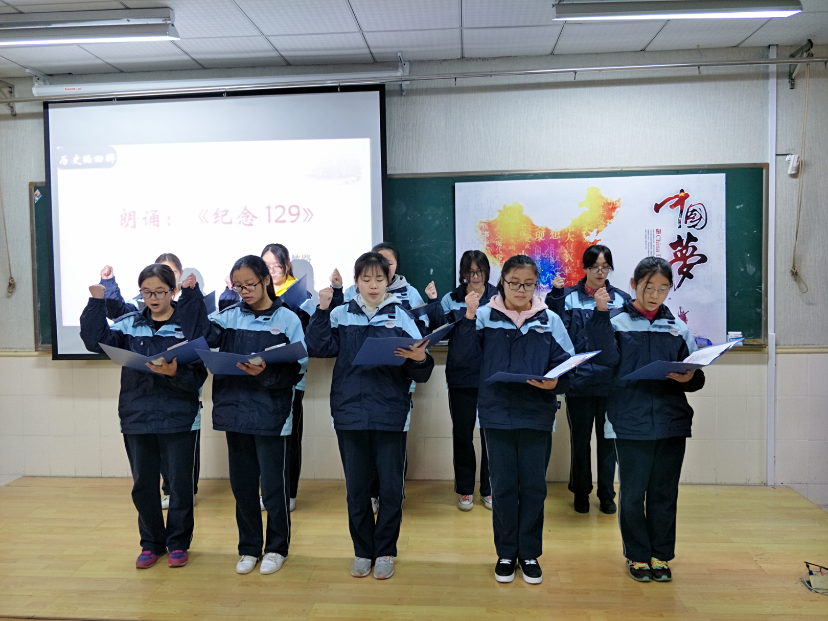 活动第三项是莫愁路女子中专朗诵队为了纪念“一二九”爱国运动带来的诗朗诵《纪念129》,在她们富有朝气与激情的声音在,我们仿佛看到了那一群爱国学子用自己的热情与鲜血踏出了一条爱国之路。他们的精神将永垂不朽,在时隔80年后的今天仍会使我们“在告别与缅怀之中,继往开来,威武中国!”