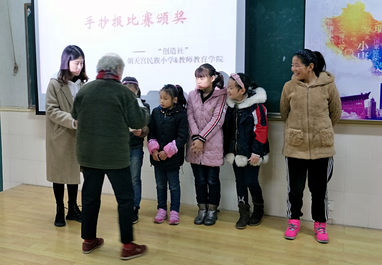 随后,抗战老兵刘文琴女士为朝天宫小学高年级的同学们进行了手抄报比赛的颁奖,小朋友们在活动之前利用学校与黄色视频