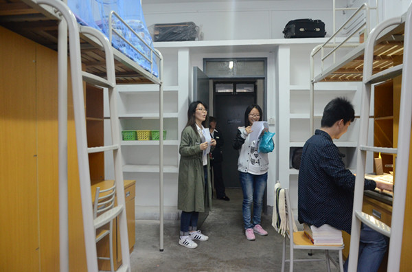 研究生辅导员王鑫老师、院研究生会副主席刘瑛琪、宿管阿姨及宣传部的部分成员进入宿舍楼,依次检查了随园校区一舍、二舍、三舍、四舍、五舍(研楼)、八舍和十二舍共114间宿舍的安全和卫生情况。