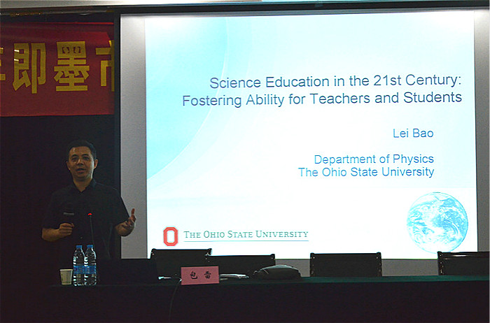 与南京物理学会的联合邀请,美国俄亥俄州立大学物理学院、教育学院教授、博士生导师,中美教育交流研究中心主任包雷教授于我校随园校区逸夫楼一楼报告厅开展了一场以“国际科学教育发展:面向21世纪的师生能力培养”为主题的学术讲座。讲座由教师院吴伟教授主持,教师院副院长封思贤、教师院学科教学系主任陈娴,南京晓庄学院、南京信息职业技术学院、南京一中、南京二十九中等南京市多所院校、中学的领导、教师代表,以及教师院全体理科类研究生参加了本次讲座。