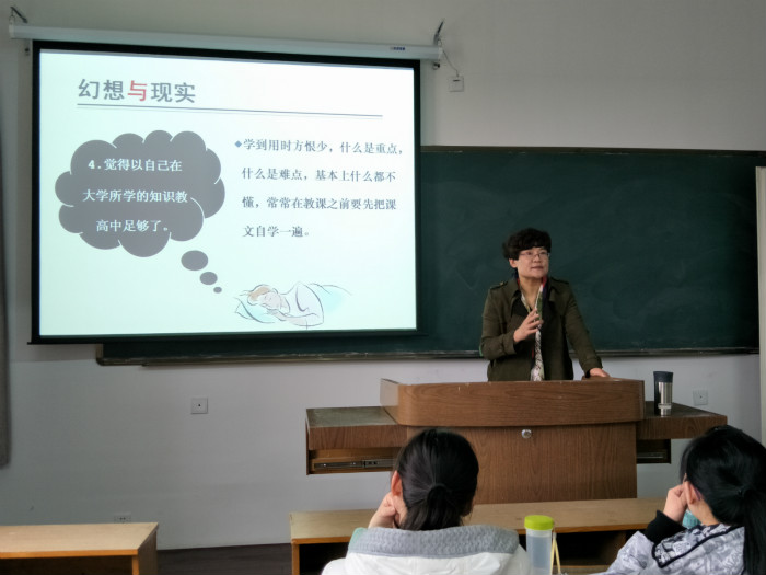 讲座一开始,朱俊老师用她自己的成长经历,向同学们讲述了新教师角色转换、适应环境、了解并步入教师行业的过程。