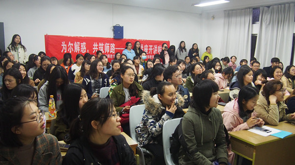 研究生学生会主办、教师院团委协办的“为尔解惑 共筑师路”本硕交流会于南师大仙林校区学明楼209教室顺利开讲。本场专题交流会由院研会副主席刘瑛琦主持,邀请了学科语文方向的李允霖以及学科数学方向的程庆保分别带来有关《王侯将相爱写词乎?——李煜、欧阳修、苏轼词选讲》和《生活中有趣的数学与逻辑》的精彩讲演。黄色视频