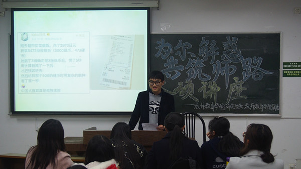作为“为尔解惑 共筑师路”本硕系列交流会的首场秀,取得了预期之外的成功。提高本硕同学的人文素养之时,也加深了对科研学理性的认识与感受。在畅游诗词的海洋之时,也构造属于自己的数学思维。共同成长,共筑师路,望接下来的几场交流会更加圆满开展。(教师教育研会 文/王洪宇 夏新宇 图/王洪宇)
