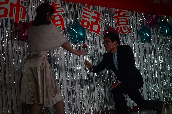 最后压轴篇章“木兰花开”中,刘更生老师演唱了淮剧片段,并与两位同学共唱《夫妻双双把家还》,一同感受师生同乐的现场氛围。三年制班的歌舞《Cups》,带来了玻璃杯和灯光搭配的创意,动感十足。话剧《白雪公主》,融合了化学班的学科特点,在跌宕起伏的情节中穿插各种化学小实验,夺人眼球。小品《孔雀东南飞》,被学科教学英语班演绎的曲折生动,同时又笑点不断。杨作东院长特地为大家带来一首《天路》,浑厚的声音饱含感情,举手投足间体现出教师的风范。最后,学科教学地理的同学们合唱《汉口西路的日子》,用改编的歌词传达出对研究生学习生活的热爱珍视。