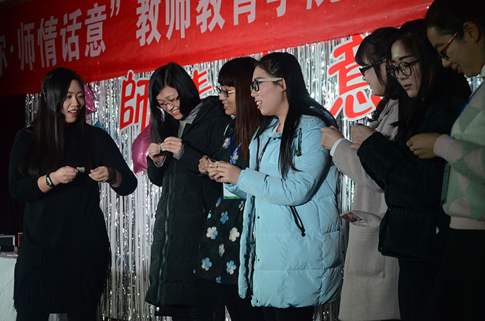迎新晚会历经一个月精心策划筹备,得到了学院领导老师的高度重视和大力支持,每个节目都通过层层选拔,优中选优,老师们也加入到节目中来,营造了师生同台其乐融融的氛围。为了节目更加精彩,能够体现教师院的学院特色和学科素养,研会各部门、各个专业班级积极排练、不断完善,在中午与晚上课余时间争分夺秒,一次次修正走位,一遍遍琢磨细节,大家都倾注了全部的热情去对待这次活动,一次晚会的背后付出了无数师生共同的努力和汗水。