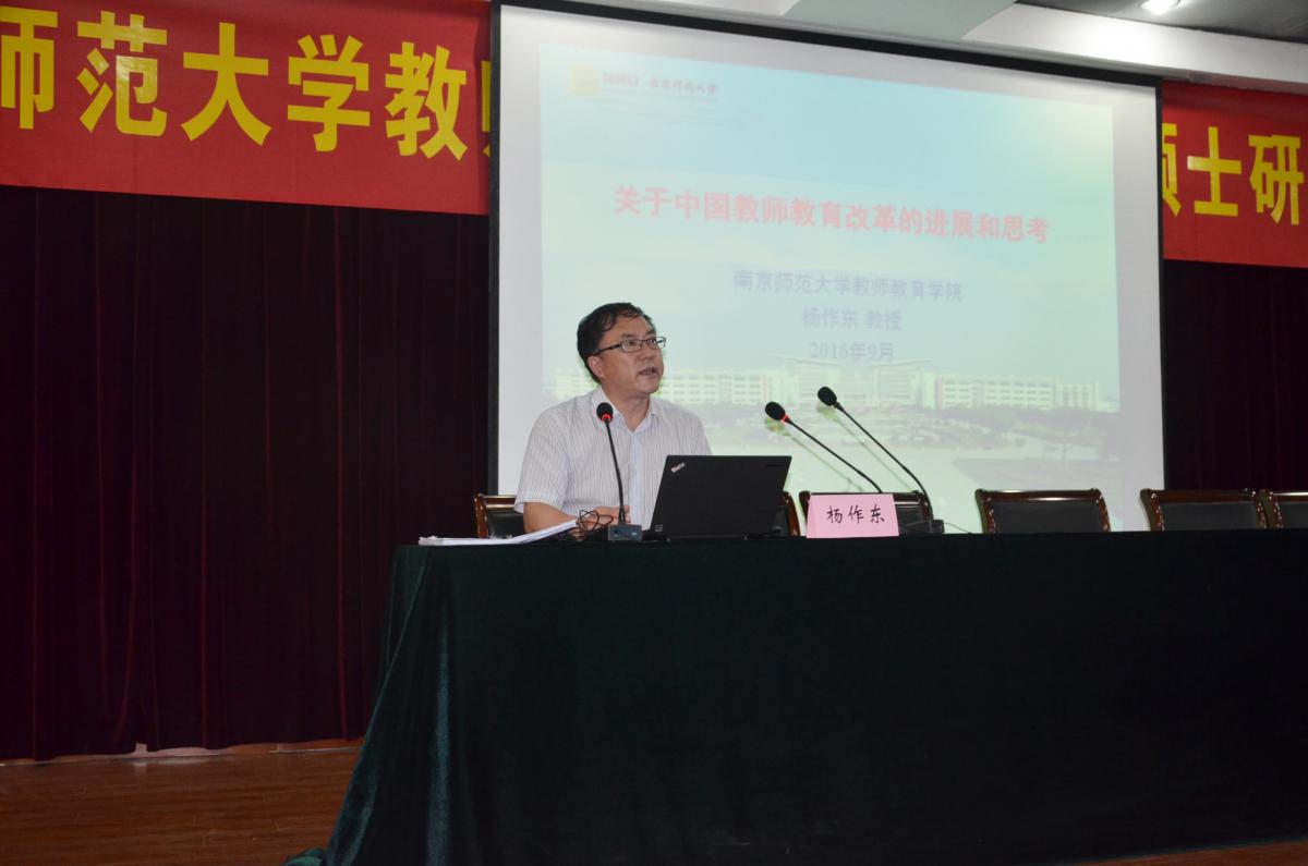 开学典礼后,杨作东院长和汪涛副院长相继给2016级研究生新生们开展了开学教育。杨院长以“关于中国教师教育改革的进展和思考”为题,给同学们简要描述了百年教师教育的历史沿革,说明了从“师范教育”到“教师教育”近年来中国教师教育改革的进展和发展走向,解析了学院的人才培养计划。杨院长娓娓道来,更进一步解析了习近平总书记提出的“四有教师”内涵。汪涛副院长在讲话中督促把握学习机会,志存高远,笃行勤学,度过一段有意义的研究生时光。