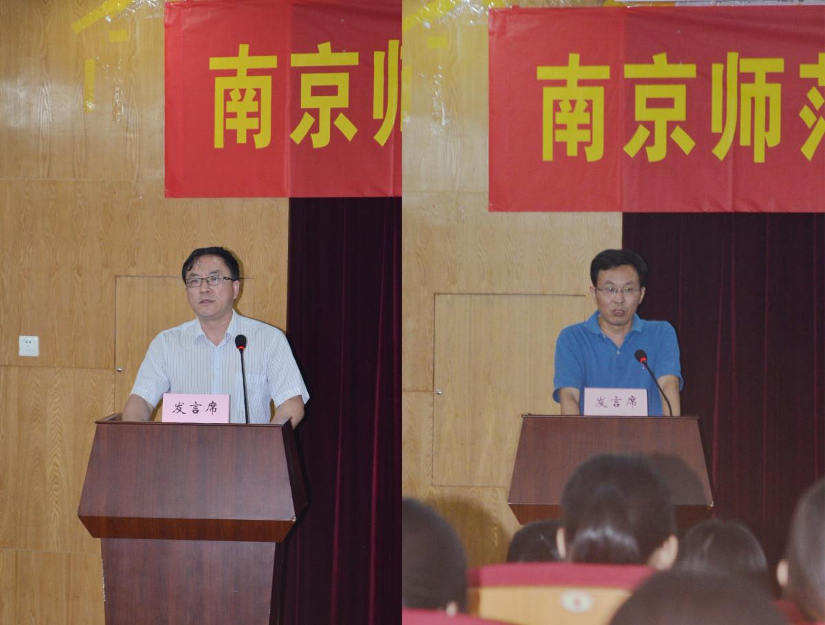 2016级研究生开学典礼暨入学教育宣讲在南师大随园校区逸夫楼报告厅隆重举行。院长杨作东老师、院党委书记张杰老师、党委副书记刘更生老师、副院长王立新老师、副院长汪涛老师等学院党政领导班子成员,以及各学科老师代表、研究生秘书、研究生辅导员及223名2016级研究生新生共同参加了典礼。此次典礼还特别邀请了实践导师代表——南京市第一中学党委书记张苏皖老师作为嘉宾出席。典礼由学院副院长汪涛老师主持。
