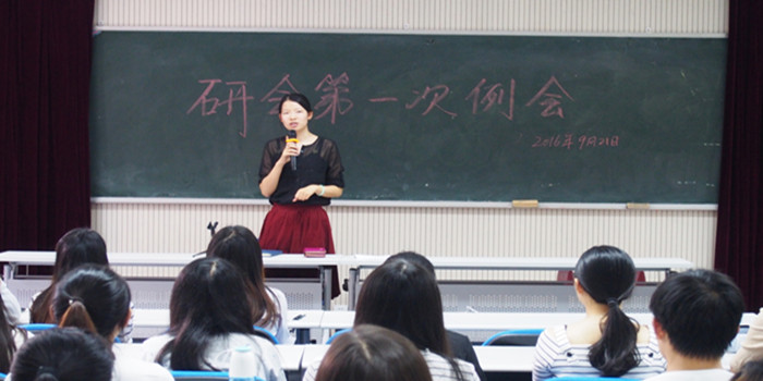 2016级研会第一次例会于逸夫楼210顺利召开。会议由研会主席周翌可主持,研究生辅导员王鑫老师以及2016级研会成员共同参与了本次会议。