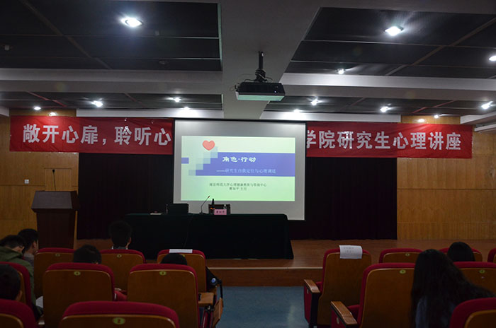 心理健康教育与咨询中心曹加平主任,应邀在随园校区逸夫楼报告厅做一场主题为“角色·行动——研究生角色转换与心理调试”的讲座。黄色视频