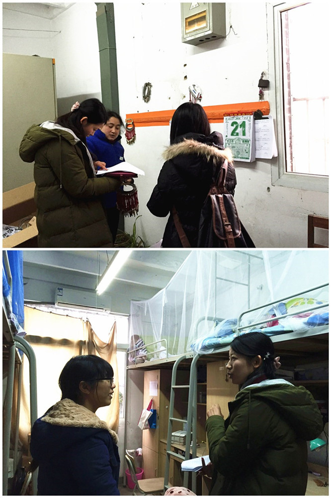 首先,王鑫老师带领教师院学生干部前往2、3、4、5舍、8舍和12舍等学生宿舍,进行了宿舍安全的检查工作,重点排查如电热毯、电水壶、电饭煲、取暖器等违禁电器。在检查过程中王老师发现有部分已经放假回家的同学,存在电源插头不拔的现象,还发现有个别宿舍有违禁电器者,便即刻通知请同学放假尽快带回家。同时,王老师检查了宿舍的卫生状况,发现教师院研究生宿舍整体卫生状况良好,但也有个别宿舍存在物品摆放不整齐,垃圾存放时间过长的现象。针对这些问题,王老师也提出了整改意见,希望留校的同学能够自觉创建和保持一个整洁舒适安全的宿舍环境,以供更好的休闲和学习生活。