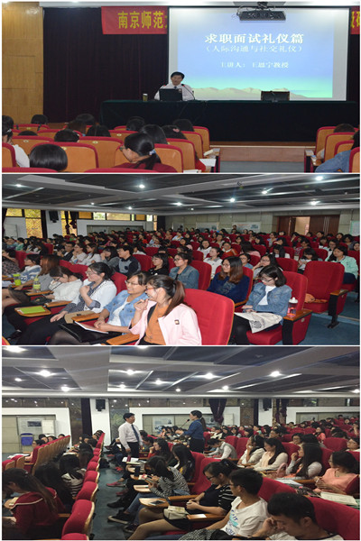 承办的职业生涯规划系列讲座第一讲“人际沟通与社交礼仪”在随园校区逸夫楼报告厅成功举行。讲座由我校著名公共关系专家、全国优秀教师、原工会主席王恩宁教授主讲,来自教师院一、二年级研究生以及其他学院的近200多名学生聆听了本次讲座。