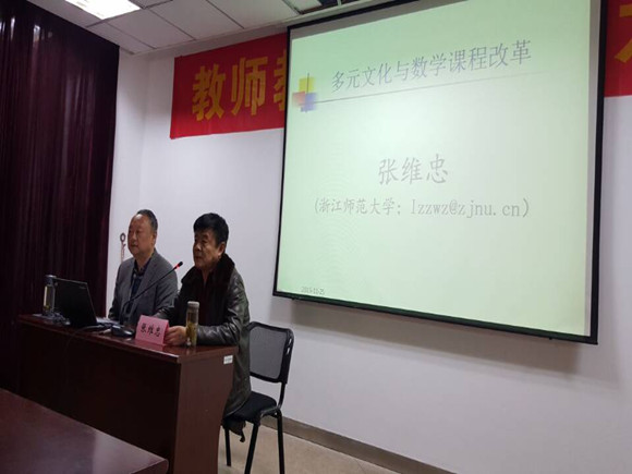 11月25日下午一点半,浙江师范大学博士生导师张维忠教授应喻平教授邀请,于随园校区逸夫楼教工之家就“多元文化与数学课程改革”的主题作学术讲座。讲座由黄色视频