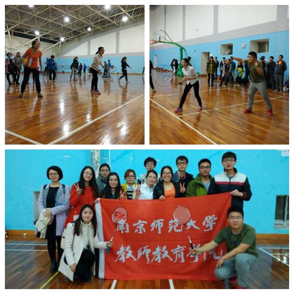 本次比赛分为男单、男双、女单、女双、混双五个项目,教师院队员们奋力拼搏,在场上挥汗如雨,为教师院的荣誉出战。在比赛的过程中不断地出现精彩的拉球与扑球的场面。第一个出战的葛腾霄同学凭借精湛的球技和积极平稳的心态,首战就轻松取胜,给教师院其他选手建立了良好的开端。最激动人心的是男双的竞技,比赛过程中由于双方实力相当,比分一直起伏不定但比分相近,到了赛点,教师院选手一个漂亮的扣杀赢得了比赛的胜利,引得同学们的阵阵欢呼,惊险的胜利使得大家连连称赞。男女混双项目中,教师院选手配合默契,在最后的比拼中,选手们显示出高超的球技,网前放小球、追身球、后点斜杀、网前截杀等,通过各种技巧的娴熟运用连连得分,再次取胜。女单、女双项目由于比赛过程中使用策略失当,遗憾惜败。最终教师院以3:2击败物科院成功晋级八强!