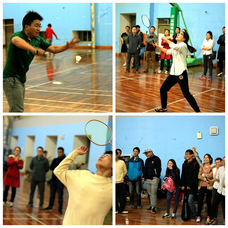 首场男单比赛,我方队员刘和平率先出场,面对对方球员的扣杀和网前截杀,刘和平稳定心态,与对方展开周旋,并一度扳回局面,但最终因实力差距过大而惜败对手。第二场鲍静同学代表我方出场,初试身手鲍静有些紧张,让对方先下一局。很快鲍静调节心态,利用网前截杀和变线技术打得对手无法招架,轻取第二局。但在第三局比赛中,对手调整战术,最终以2:1的大比分输掉第二场。第三场男双比赛代表我方出场的葛腾霄和刘和平奋力先前,敢打敢拼,打出了几个小高潮,赢得了全场的喝彩,但终因实力差距惜败。
