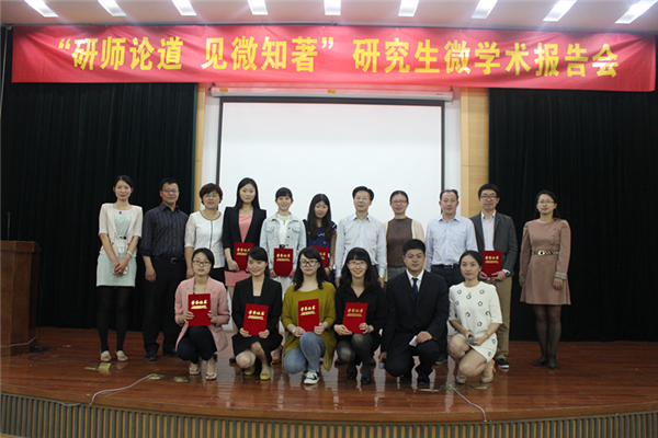 至此,“研师论道 见微知著”研究生微学术报告会圆满结束。张婷同学荣获一等奖,王珍珍、齐云霞同学获二等奖,张婷婷、姜文正、胡蕾同学获三等奖,李博群、田思雨同学获优胜奖。包罗万象的学术盛宴,碰撞出各学科知识的火花,引导、激励着研究生同学们坚定信念、潜心学术。