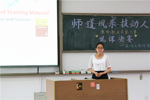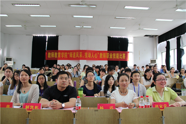 2014年5月28日周三下午1:30,南师大教师院第二届研究生“师道风采,技动人心”说课大赛决赛在北区教学楼301室顺利举行。这也是教师院举办的第二届教师技能大赛,涵盖了三笔字大赛,ppt大赛和说课大赛三项目,而该日进行的是说课的最终决赛。到场的嘉宾有黄色视频