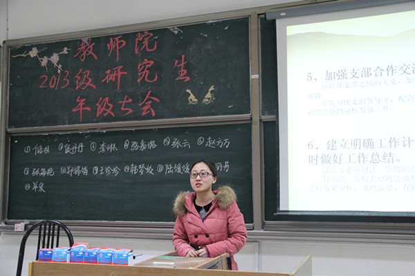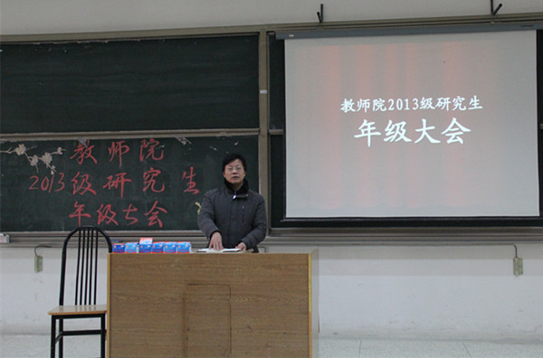 党委副书记江胜尧老师、研究生辅导员王鑫老师以及全体2013级研究生同学参与了本次大会。