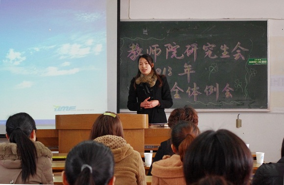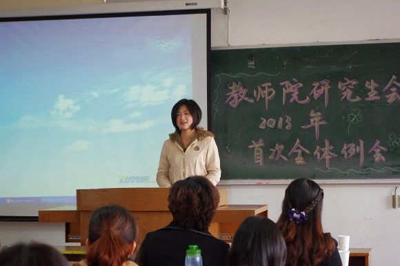 随后,朱冬梅老师对同学们的发言给出了指导意见。针对研究生会干部队伍建设、内部机制建设等问题,朱老师结合学校、学院整体性工作安排,从师德、师能、实践三个方面为建设教师院特色品牌活动提出了建议和新的设想,同时对研会策划的三个基本要素:指导思想、主要工作、时间安排和分工再次做出规范和强调。