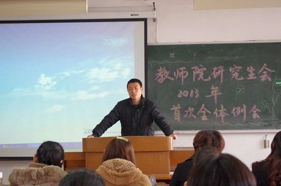 会上,辅导员王鑫老师先对上学期的工作进行了肯定性总结,然后宣读了2012级研究生会人员调整及任命情况。在对新一届研究生会干部表示祝贺的同时,王老师也对全体成员提出了殷切期望:要明确宗旨,履行责任,以服务学生为宗旨;要勤奋学习、刻苦钻研,以学术领先为目标。
