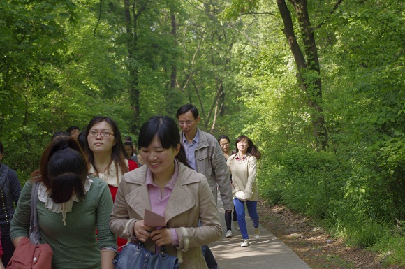 活动开始之前,各位同学就以3-4人的小组为单位进行了报名,大家还为各自的队伍取了很多响亮又别致的队名。有“向日葵”队、“学术一家亲”队、“皇室登山队”等等。比赛于25日上午九点正式开始。在简要介绍了比赛赛制和注意事项之后,大家纷纷拾级而上,奋力攀登。