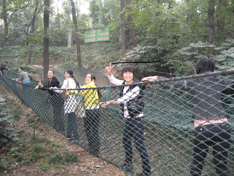 上午9时整,同学们到达国防园的军体乐园。女生们毫不示弱,立刻活动筋骨,大展拳脚,顺利完成吊桥、钢索等高难度项目,尽展巾帼英姿!