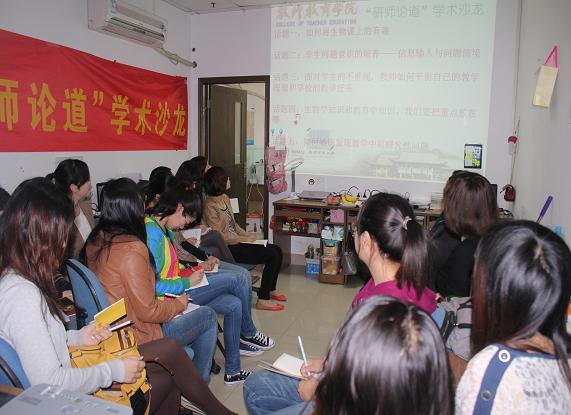 研究生“研师论道”学术沙龙生物专场在南师大仙林校区生科楼南119办公室圆满举办。出席本次活动的主要有教师院副教授、硕士生导师解凯彬、院研究生会代表陆婷婷以及12级学科教学(生物)专业的全体同学。