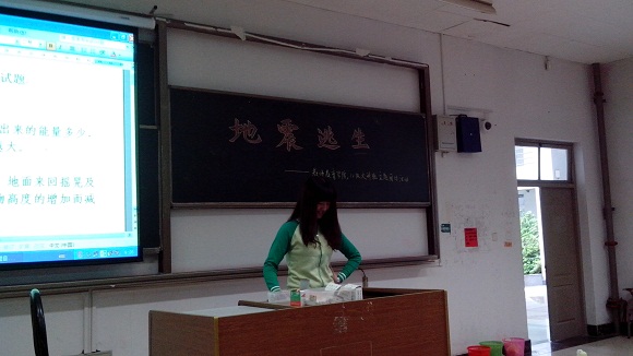 介绍完了地震逃生的基本知识后,周洁同学还组织了一场小型知识竞赛来考察大家对讲座知识的掌握程度。同学们积极参与、踊跃答题,将活动现场的气氛推向了高潮。