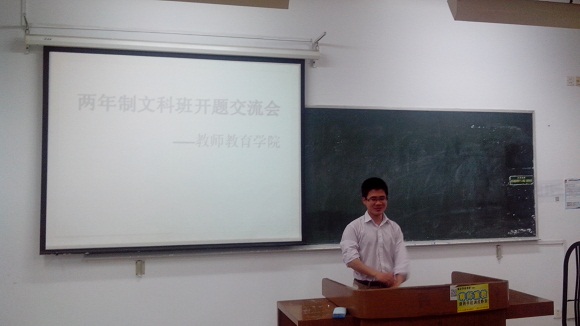 5月26日上午9:00,教师院12级研究生两年制文科班在学明楼113教室举办了论文开题交流会。语文、英语、政治、历史班的大多数同学积极参与了这次活动,交流会举办得非常成功。