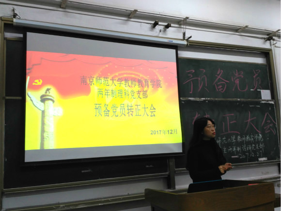 2017级研究生两年制理科党支部在随园校区召开预备党员转正大会。本次会议由两年制理科党支部书记潘玥主持,党支部全体党员参与了本次会议。