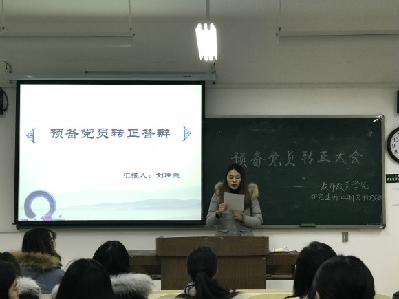 大会第六项:由两年制文科党支部书程思瑶宣布转正结果。