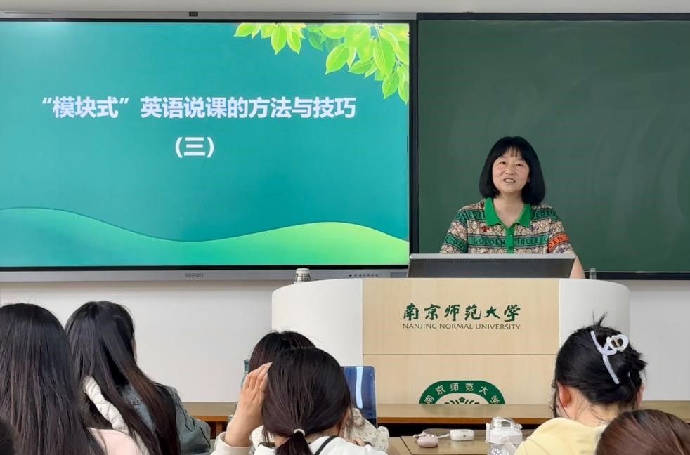 讲座第二部分,罗教授介绍了“模块式”英语说课的方法与技巧。罗教授指出,说课的总体思路主要基于教什么(教学内容)、教谁(教学对象)、怎么教(学)和为什么这么教。在说课的过程中要说清具体教学内容,要进行教材分析,明确教学重点和难点。同时说清所教学生的语言、文化和思维等相关知识和能力水平,进行学情分析。此外,要说明采用何种教学模式或教学方法,教学过程划分为几个教学步骤,具体设计哪些教学活动,每个活动如何开展,效果如何。接着,说明重点、难点和教学目标确定的理论依据,说明教学流程和具体教学活动设计的理论依据,说明教学活动组织与教学过程调控的理论依据。